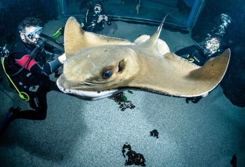 Tenemos también 3 acuarios táctiles para adultos y niños, donde podrán tocar y conocer mejor algunas especies como los erizos y pepinos de mar.