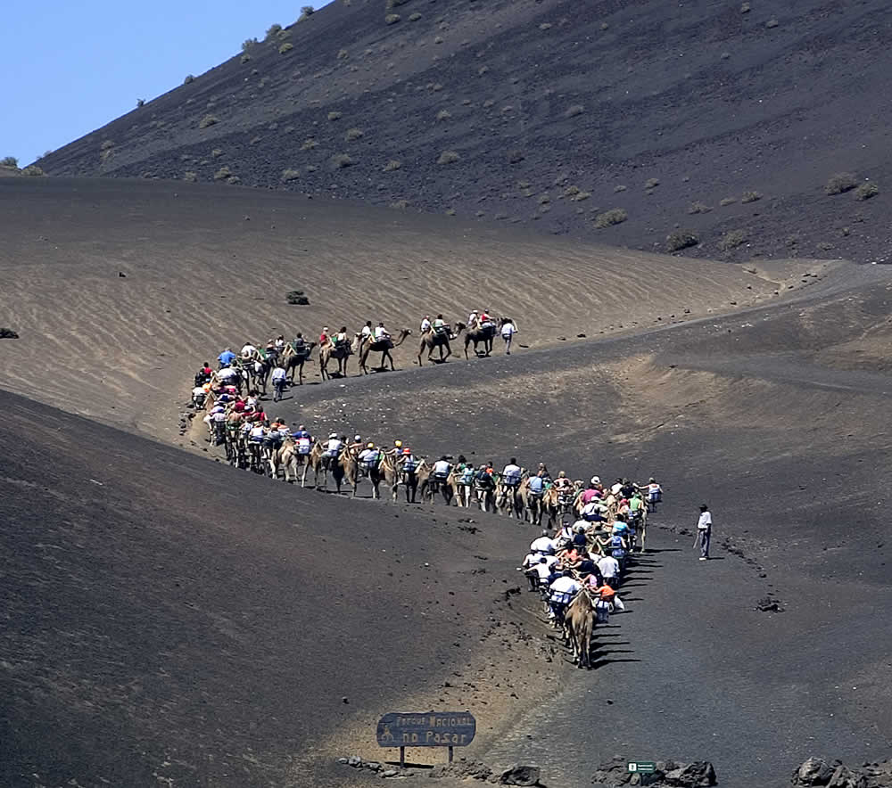 Hast du jemals ein Kamel geritten? In der unglaublichen Umgebung des Timanfaya-Nationalparks können Sie einen etwa 20-minütigen Spaziergang am Hang des Vulkans Macizo del Fuego entlang unternehmen und auf dem Rücken eines Dromedars unvergleichliche Ausblicke auf die Welt genießen. Es wird etwas Lustiges sein, das Sie nicht vergessen werden.